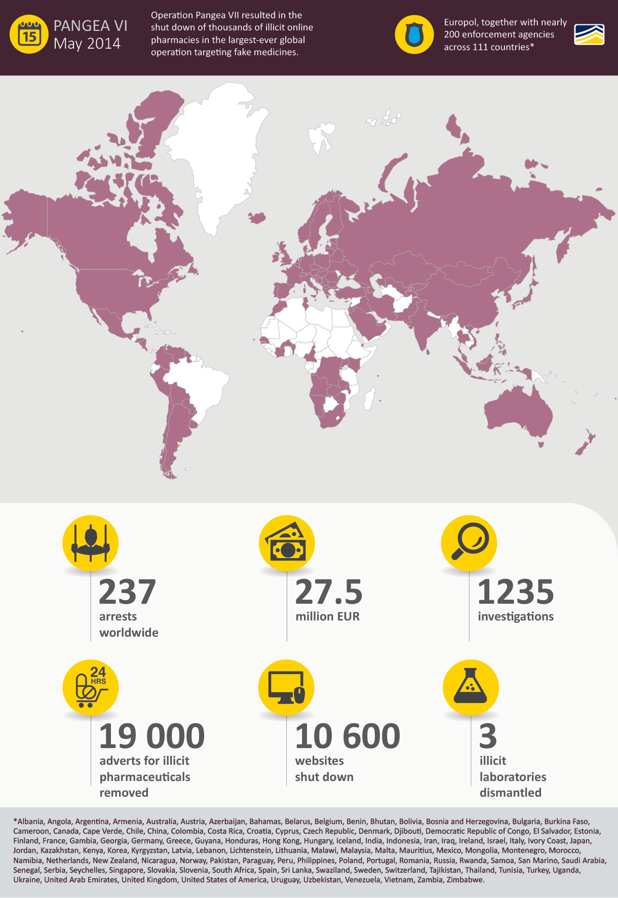 In June 2014, Europol and US Immigration and Customs Enforcement (ICE) Homeland Security Investigations (HSI), together with 11 law enforcement agencies from eight countries, seized 188 domain names that were illegally selling counterfeit merchandise online to unsuspecting consumers. The operation was coordinated by Europol for the participating EU Member States (Belgium, Bulgaria, France, Italy, Romania, Spain and the United Kingdom) and the HSI-led National Intellectual Property Rights Coordination Center (IPR Center) in Washington, DC for the US.