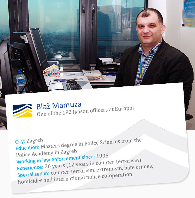 Meet Blaž, Croatia’s liaison officer at Europol. Croatia joined the EU in July 2013 but their liaison bureau at Europol was established in early 2008. Blaž has been working from Europol headquarters for nearly two and a half years now. Before him, only one other officer had occupied this function. Blaž’s daily routine involves the coordination of information and intelligence related to criminal investigations that have links to Croatia.