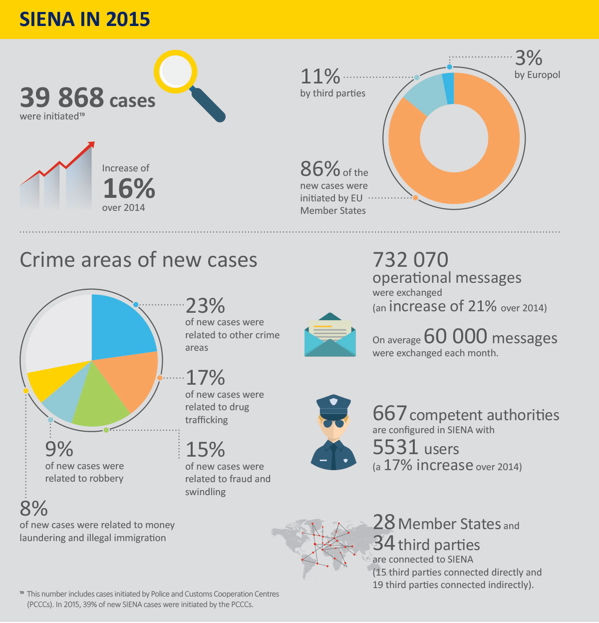 The Secure Information Exchange Network Application (SIENA) enables the swift and secure exchange of operational and strategic crime-related information and intelligence between EU Member States, Europol and cooperating third parties.