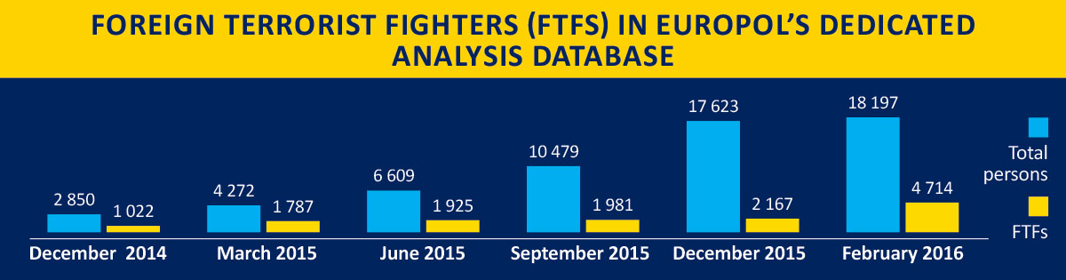 The attacks raised the question of whether IS is changing its prime focus from seizing territory and local resources to more global goals. Its involvement in international terrorism against the West was, until November, limited to attacks on tourists in Muslim-majority countries, and inspiring individuals in Europe to perpetrate lone-actor terrorist attacks. This apparent shift of focus of IS, and also the activities of other terrorist groups threatening the safety of the EU, is closely monitored by counter terrorism experts from EU Member States, supported by Europol specialists and analysts. The overall purpose of these efforts is to make timely interventions possible, and to react effectively to any terrorist activities.