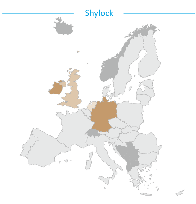 Shylock first appeared in 2011 and used advanced ‘Man-in-the-Browser’ attacks to steal financial data and make fraudulent transactions. Shylock is a privately owned (by its creators) financial Trojan and as such its use and distribution is highly constrained. It is not available for purchase on underground markets20. Despite successful disruption activity, several EU Member States still report significant Shylock activity.